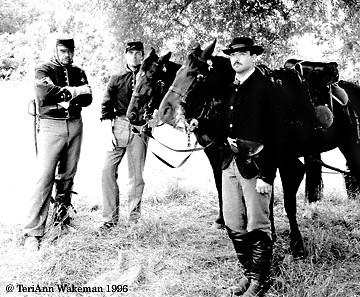 After the cannon was unloaded in the field the troops moved the horses away and are resting them under an oak tree while waiting for the orders to move the cannon.